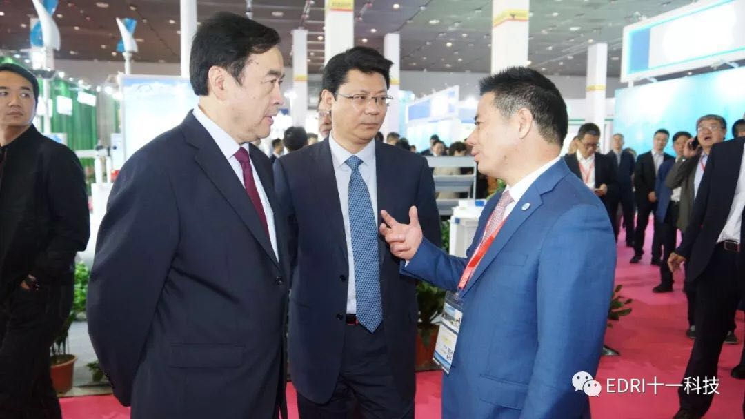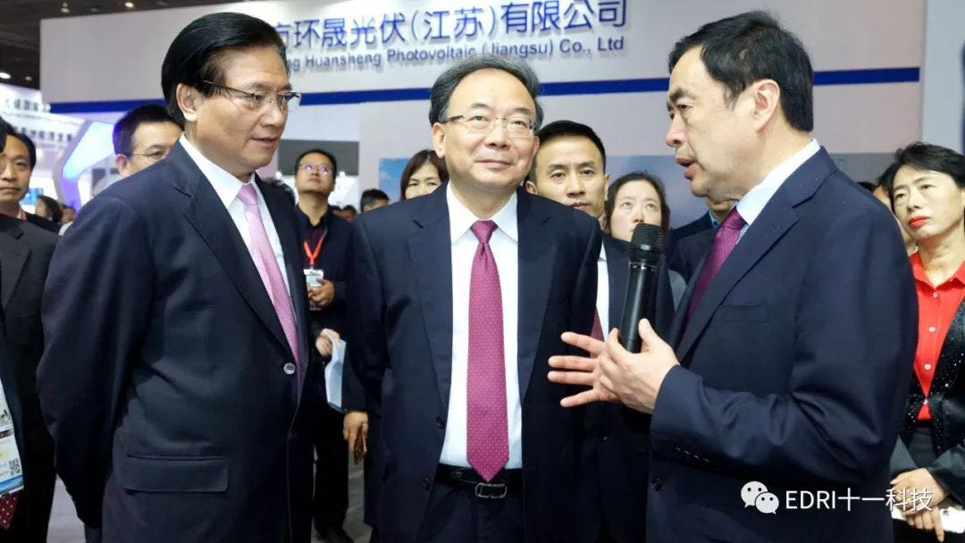 当小敏书记、黄钦市长来到十一科技展台时,受到十一科技热烈欢迎,赵振元同志就十一科技的公司情况,新能源领域、集成电路领域的情况,向小敏书记、黄钦代市长作了简要汇报,小敏书记对十一科技取得的成就给予了充分肯定,对无锡产业发展所作的贡献给予高度赞扬,在场的领导对十一科技所取得的成绩纷纷表示赞赏。