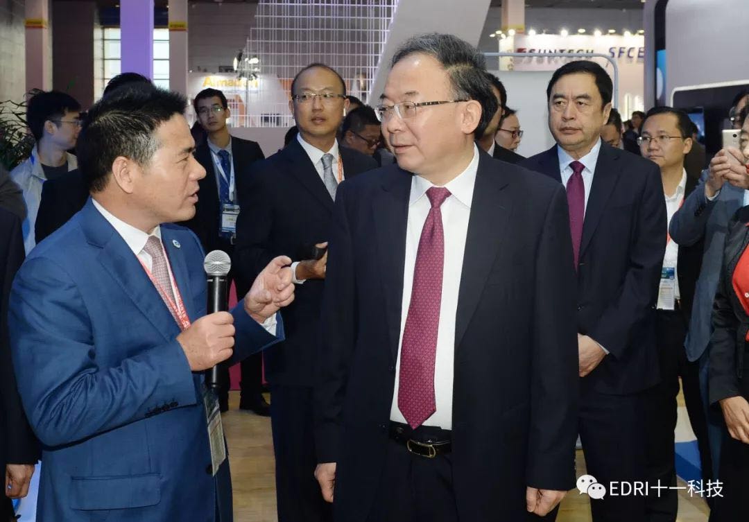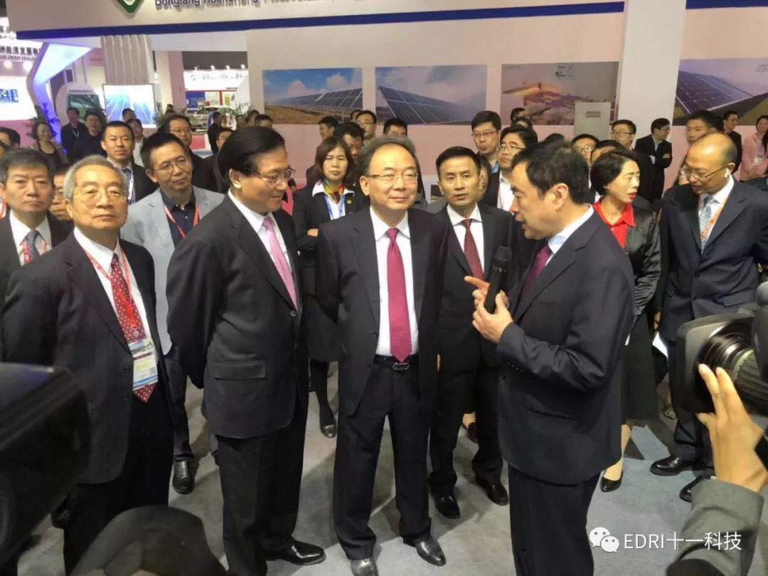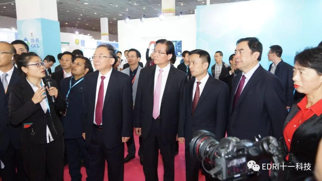 十一科技董事长赵振元陪同市委、市政府领导参观了保利协鑫、远景能源、中环、远东集团、中设国联等参展商展台,了解各企业最新产品、技术等。
