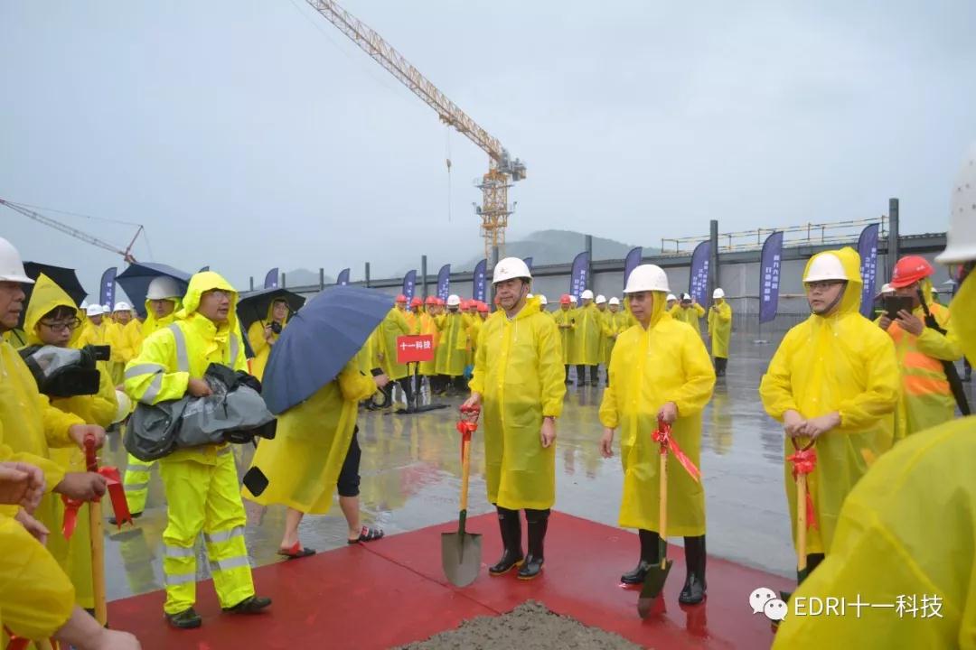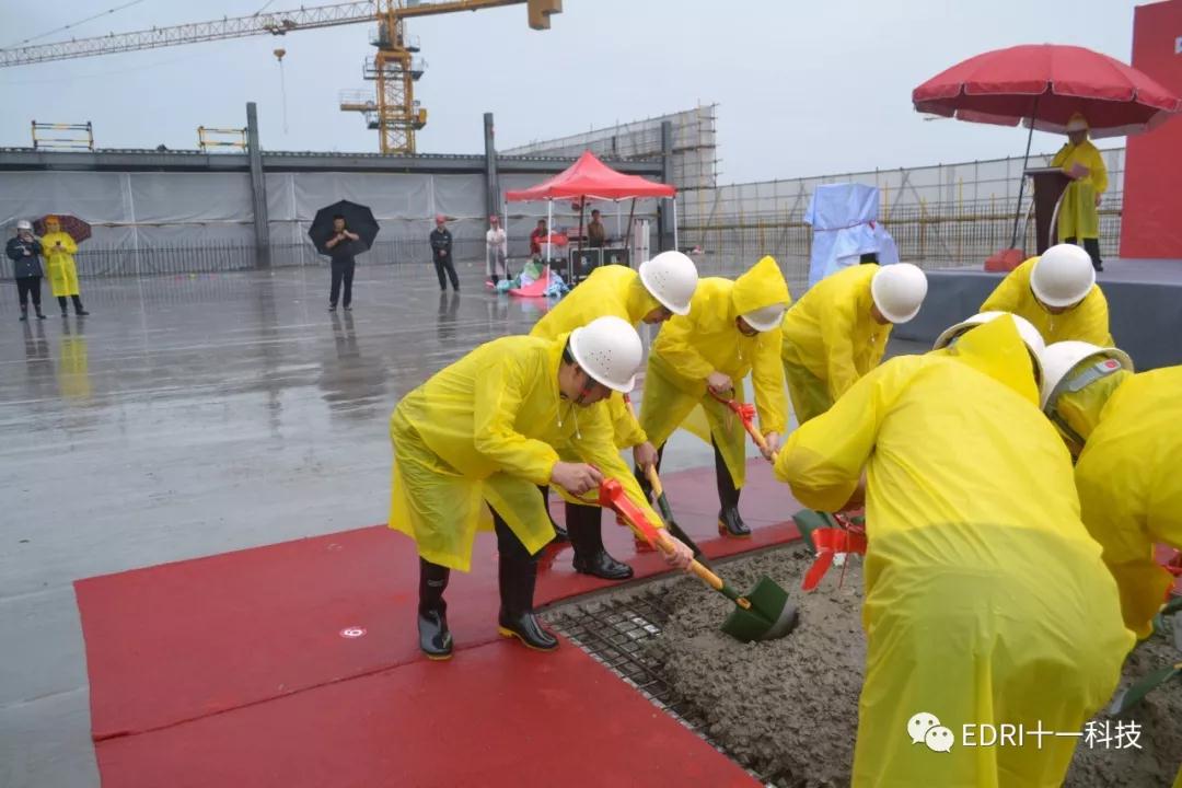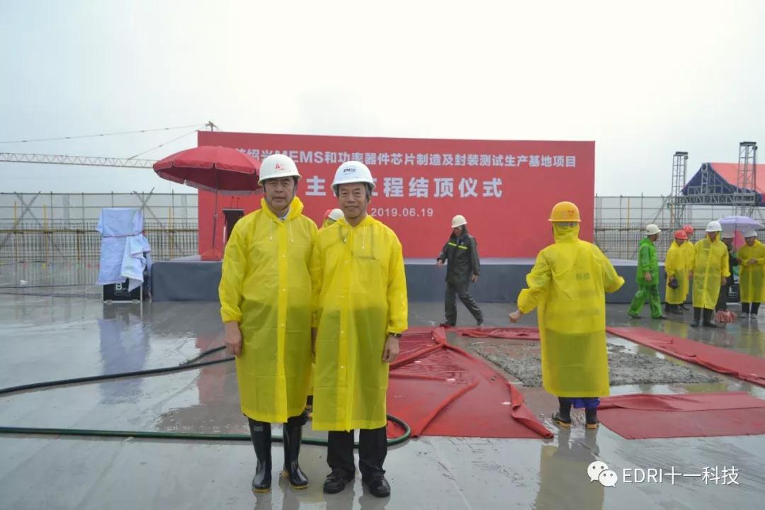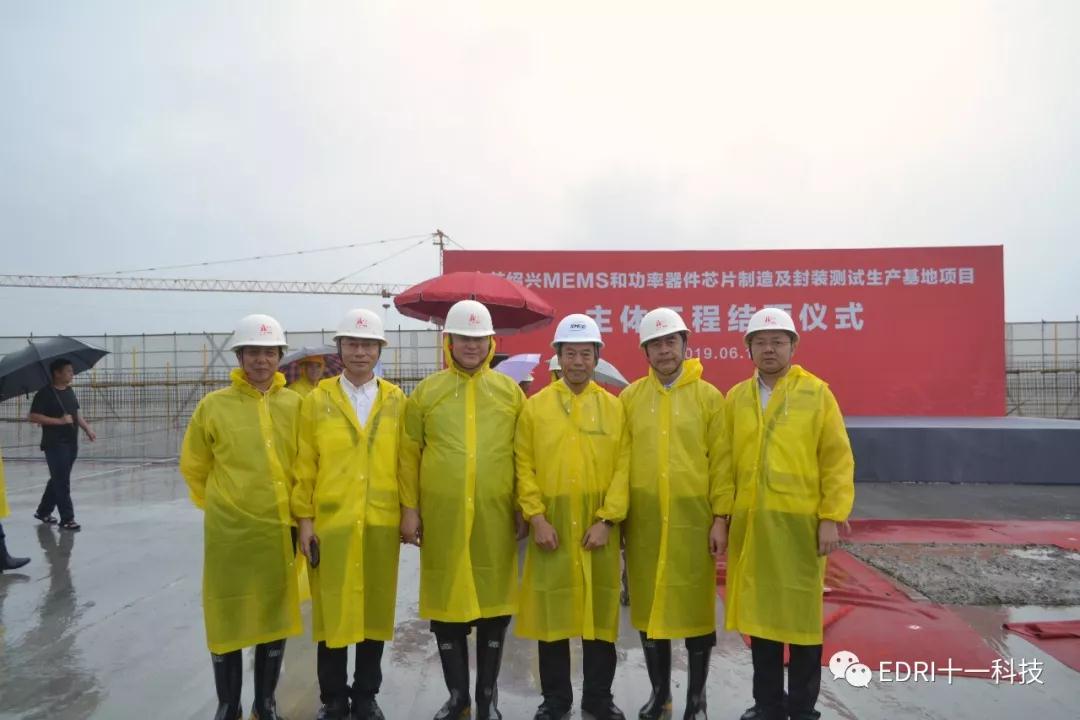 2019年6月19日上午,十一科技总承包的中芯绍兴MEMS和功率器件芯片制造及封装测试生产基地项目隆重举行主体工程封顶仪式。绍兴市委书记马卫光、绍兴市市委秘书长陆维、绍兴市副市长孙哲君、中芯国际CFO高永岗、中芯绍兴董事长丁国兴、中芯绍兴总经理赵奇、十一科技董事长、党委书记赵振元、高级副院长白焰等领导出席仪式。中芯国际CFO高永岗、中芯绍兴总经理赵奇先后致辞,对十一科技、各参建方及绍兴市各级市政领导对项目的大力支持和辛勤付出表示感谢。在仪式上,赵振元与马卫光书记、高永岗CFO、赵奇总经理等领导亲切交谈,并与出席仪式的领导共同挥铲为主体厂房的结构封顶完成最后一方混凝土的浇筑。